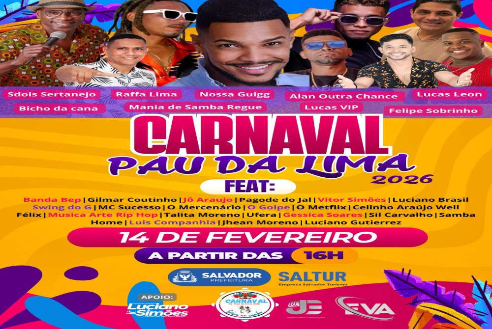 Mais uma edção do carnaval de Pau da Lima, no dia 14/02 teremos CARNAVAL FEAT 2026, com as participações da bandas;